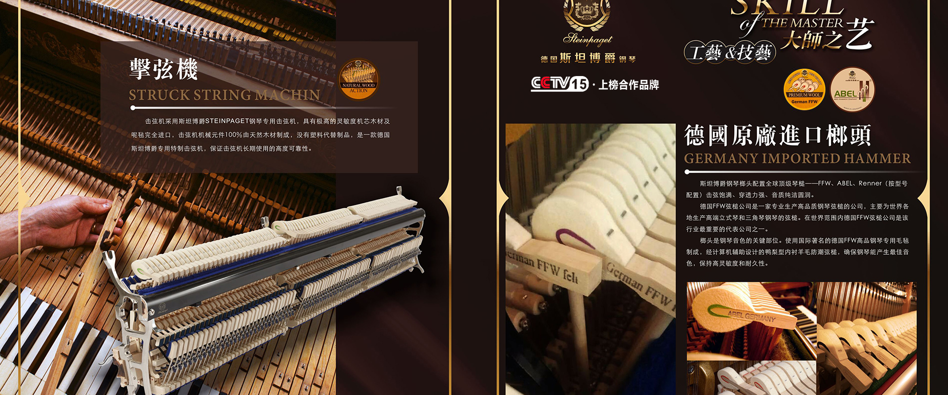 斯坦博爵是一家專注于STEINPAGET立式鋼琴與三角鋼琴的研發、生產與銷售的公司。我們巧妙融合先進的德國制琴工藝與獨特鋼琴設計,致力于打造卓越品質。我們以三大核心價值為基石:經營理念追求“高效 · 品牌 · 服務”,產品理念恪守“傳承 · 創新 · 品質”,服務宗旨奉行“客戶需求即工作,客戶要求即追求。為鑄就非凡品質,我們全方位投入:引進德國、美國、日本尖端設備與優質制琴材料;特邀德國頂級設計師及美國專家顧問傾情指導,傳承歐洲經典工藝與純正德國精髓;斥資打造恒溫恒濕生產車間及成品鋼琴靜置倉,確保全球任何氣候下STEINPAGET鋼琴音質純美、演奏性能始終如一;并在中國構建完善售后服務體系,提供國際水準的真誠服務。